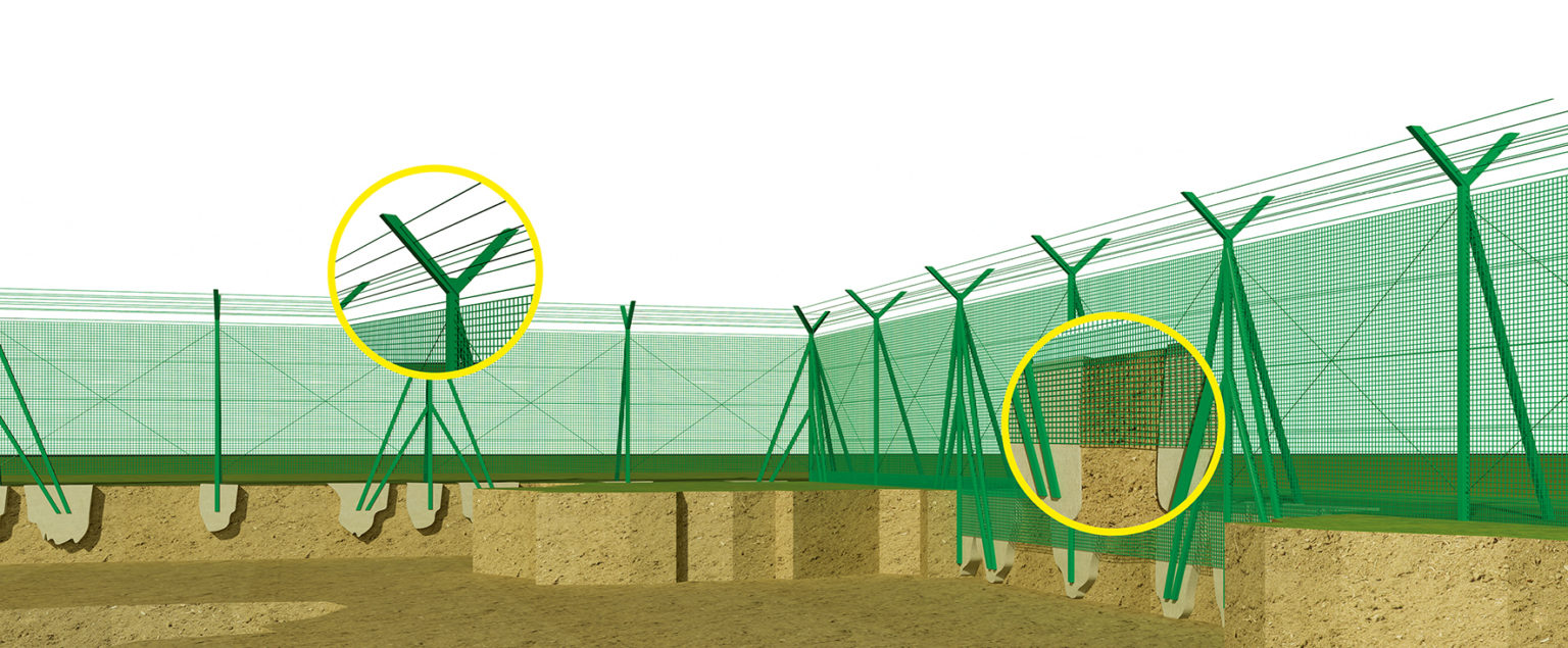 Le recinzioni FibreFENCE MESH vengono installate direttamente in cantiere assemblando reti, profili e controventi in vetroresina. Questo design rende FibreFENCE MESH una delle soluzioni più efficienti, durature ed economiche tra tutti i sistemi di recinzione certificati radiotrasparenti disponibili sul mercato.
